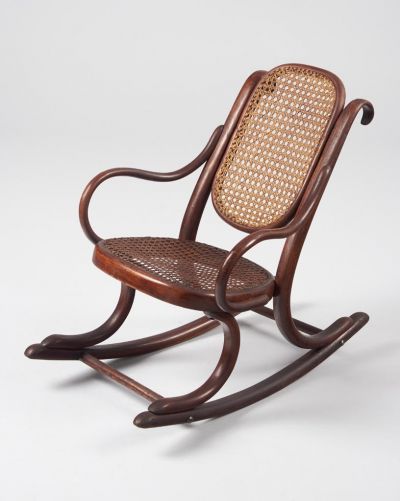 Az osztrák hajlítottbútor-gyár, a Thonet kínálatában már az 1860-as években megjelentek a gyermekbútorok. Ezek egy részét kimondottan kisgyermekek számára fejlesztették ki, például a gurulós asztalkákat és székeket vagy a magasított etetőszékeket, többségük azonban a „felnőtt modellek” kicsinyített másolata volt. A Thonet cég igazi sikertermékei lettek a hintaszékek, amelyek gyermek változatai már az 1870-es évek végén kiadott termékkatalógusokban is szerepeltek, és hosszú évtizedeken át, szinte változatlan formában gyártották őket. Az Iparművészeti Múzeum nádazott ülőlappal és háttámlával kivitelezett darabja 1880 körül készült.