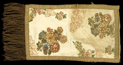 Anyag: | aranyszínű fémfonal; fém flitter; fém gyöngy; selyem |