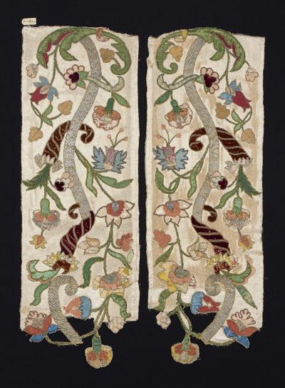 Anyag: | aranyszínű fémfonal; atlasz alap; ezüstszínű fémfonal; selyem |