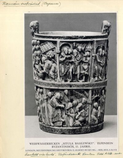 Illusztráció - elefántcsont szenteltvíz tartó, az ún. „ Situla Basilewsky ”