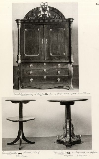 Illusztráció - emeletes szekrény, polcos asztalka és kerek asztal