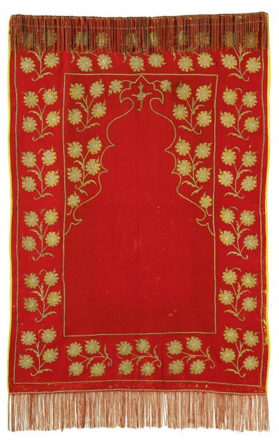 Az imaszőnyeg – anyaga és díszítménye alapján – a vörös posztóra fémfonallal hímzett oszmán-török takarók csoportjába tartozik. Az 1640-ben készült isztambuli árszabás (narh defter) a yapuk nevű lótakaró-készítők árui között sorolja fel a çuha vagy aba posztóból szabott és hímzéssel díszített négyzet alakú yapukokon kívül a hasonló anyagú és díszű tűzhelytakarókat (ocak yasmagi) és ajtófüggönyöket (kapi perdesi) is. Bár a limitáció nem említ posztóra hímzett imaszőnyeget, az isztambuli Topkapi Sa-rayi Müzesi, valamint a varsói Muzeum Narodowe gyujteményében lévő tűzhelytakarók ismeretében, melyek díszítménye gyakorlatilag imaszőnyegünk felső felével-harmadával azonos.