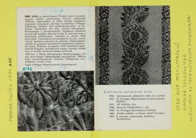 Meghívó - Imre Júlia textiltervező „Művész az iparban” című kiállításának meghívója (IM, 1971)