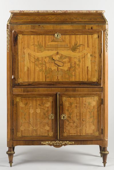 Az itt bemutatott szekreter az 1764-ben asztalosmesterré lett Denis Toupillier (?-1791 után) műve. Az írószekrény alul kétajtós, lehajtható írólapja mögött fiókok, rekeszek helyezkednek el, záró részében, a márványlap alatt egy fiók található.