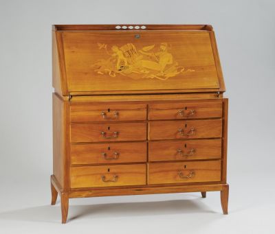 Anyag: bukszus berakás; diófa borítás (furnér); kőrisfa berakás; szaténfa berakás