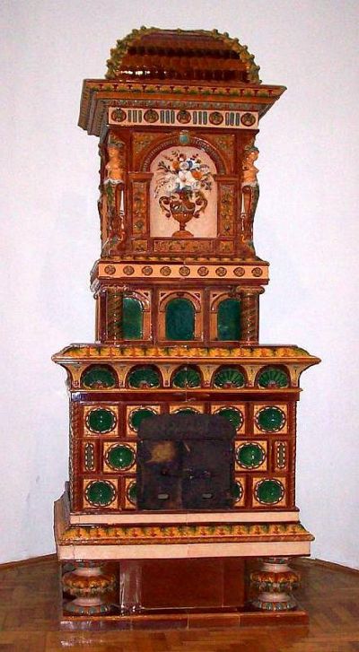 Zsolnay Vilmos 1885-től indította el a rendszeres kályhagyártást, a pécsi Janus Pannonius Múzeumban őrzött, a kályhák elemeit megörökítő l. sz. Kályha-mintakönyvben ( ltsz. 1437.1-87.) a 6. számú kályha elemeivel azonosítható az Iparművészeti Múzeum földszintjén felállított példány.