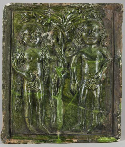 Kályhacsempe - Ádám és Éva alakjával-a besztercebányai Ébner-házból