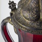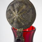 | Anyag: | ón fedél (feltehetően); réteges üveg; rubinüveg; színtelen üveg |