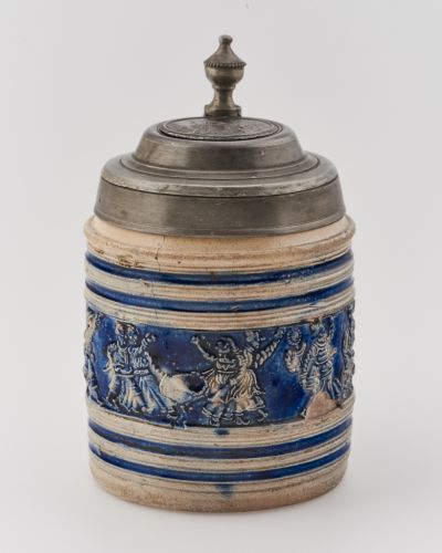 Kancsó ónfedéllel - fedelén Krisztus megkeresztelését ábrázoló éremmel
