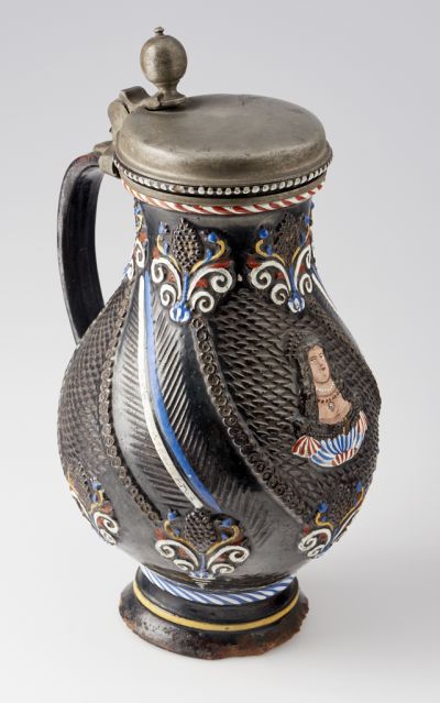 Technika: | aranyozott; barna mázas; csavartan bordázott; plasztikus díszítés; vésett díszítés; zománcfestés |