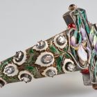 Ez a többféle ékszertechnikát is felvonultató – drágaköves-zománcos-filigrános, – bravúrosan kialakított, csuklós tagozattal szétnyitható ékszer nemcsak az Iparművészeti Múzeum 1900. évi karácsonyi kiállításán szerepelt, de két év múlva Torinóban is sikert aratott. Az itt kiállított kollekcióból vásárolta meg az Iparművészeti Múzeum a Magyar Királyi Kereskedelemügyi Minisztérium által utalványozott összegből.
