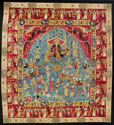 A kárpit-technikák egyik változata a selyemapplikáció, amelynek készítése során a különböző színű selymekből kivágott motívumokat varrással rögzítik a selyem alapszövethez. Az applikált selyemkárpitok a 16. században különösen kedveltek voltak Spanyolországban és Itáliában, de ismert gyapjú- és vászon változatuk is. Az Iparművészeti Múzeum e technika egyik unikális példányát, egy 16. századi iráni, Szafavida kori selyemapplikációt őriz, mely a 17. század eleje óta a fraknói Esterházy-kincstár anyagához tartozott.