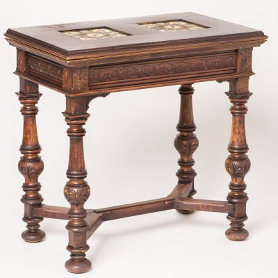 Technika: | esztergályozott; faragott; lap posztóval bevpnt; majolika csempével; vésett díszítés |