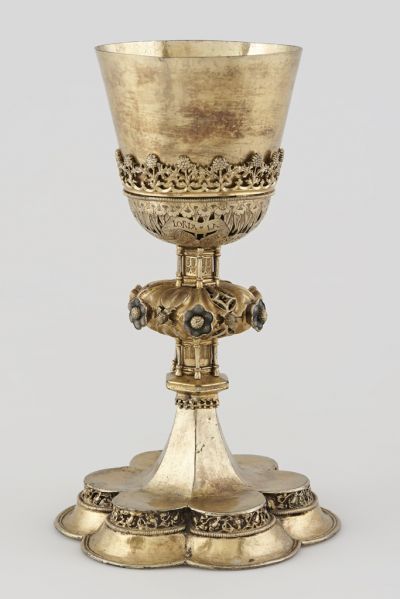 Egger Henrik az üzlettől visszavonulva műgyűjtésbe fogott. Az itt bemutatott latin feliratos kelyhet saját, mindössze félszáz darabból álló, de színvonalas (francia bútorokat, itáliai kisbronzokat, szőnyegeket stb. is fölvonultató) kollekciójából kölcsönözte az Iparművészeti Múzeum magyarországi kelyheket bemutató kiállítására. Az 1913-ban közszemlére tett ötvösmű két évvel később bekerült az időközben elhunyt Egger Henrik hagyatékából a Múzeum számára megvásárolt anyagba.