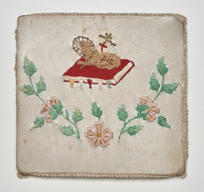 Anyag: | aranyszínű fémfonal; pamutfonal; selyem; selyemfonal (feltehetően) |