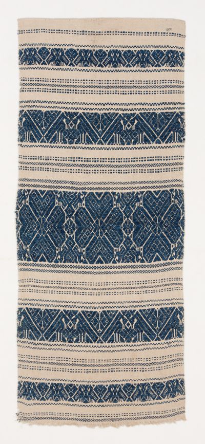 Technika: | kék pamutfonallal mintázva; szövött |