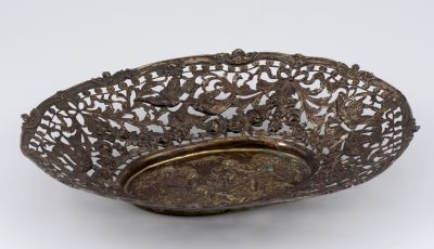 Technika: | áttört; hullámos szél; öntött; plasztikus díszítés; trébelt |