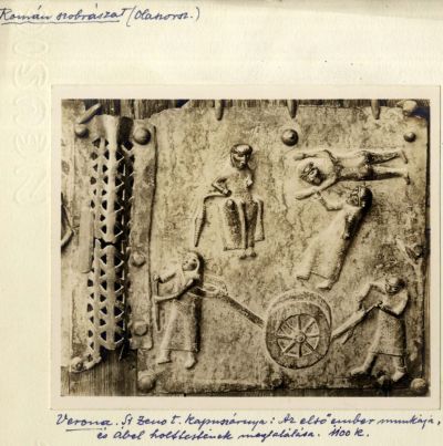 Képeslap - San Zeno templom, a bronzkapu részletei: az első ember munkája, Ábel holttestének megtalálása