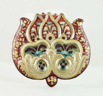 | Technika: | eosinmázas kézi festés; formába préselt |