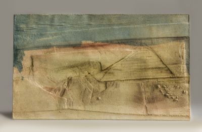 Jelzés: | hátoldalán feketével, kézzel írva: Minya Mária, mellette körbe foglalt MM monogram / ALFÖLD 2. / fémsóval színezett / kordierit massza (préselt) |