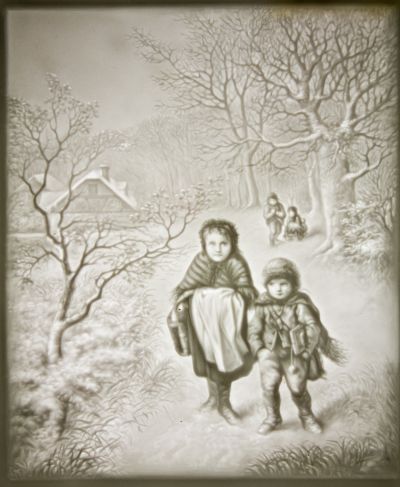 Kerámiakép - iskolába induló gyerekek