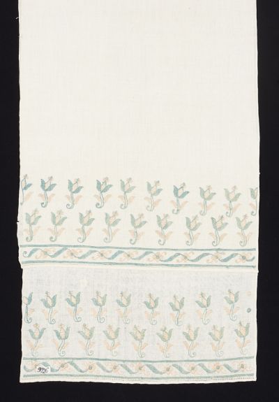 Technika: | kétoldalas laposöltés; selyemmel lefogott fémfonalas hímzés |