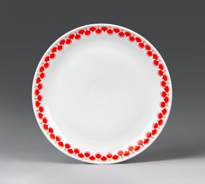 Kerek tál (készlet része) - A Bella-207 asztali készlet része, piros színű Gabriella dekorral