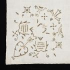 | Anyag: | aranyszínű fémfonal; lenvászon; selyemfonal |