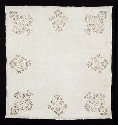 Anyag: | aranyozott ezüstfonal; ezüstfonal; pamutvászon; selyemfonal |