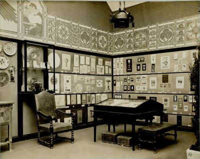 Kiállításfotó - a stockholmi iparművészeti iskola terme az 1909-es Stockholmi Iparművészeti Kiállításon