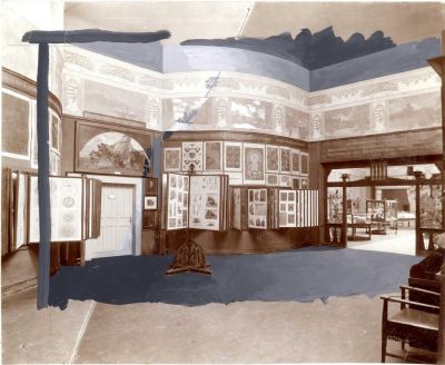 Kiállításfotó - az 1906. évi Milánói Világkiállítás magyar pavilonja-az Országos Rajztanárképző és Mintarajziskola, valamint az Országos Magyar Királyi Iparművészeti Iskola kiállítása