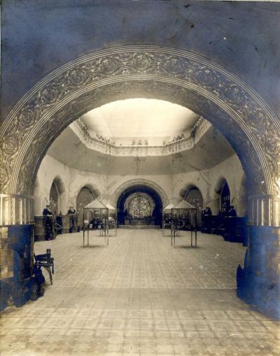 Kiállításfotó - az 1906. évi Milánói Világkiállítás második magyar pavilonja: az ún. galambos udvar bejárata