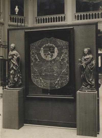 Kiállításfotó - az ún. fojnicai kazula az Iparművészeti Múzeum 1930. évi egyházművészeti kiállításán