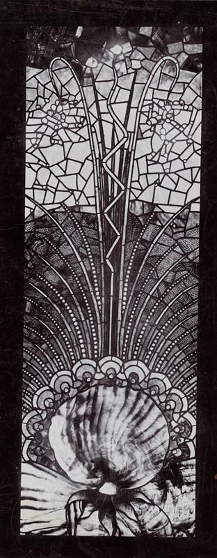 Kiállításfotó - festett üvegablak Róth Miksától a Magyar Iparművészeti Társulat 1898. évi karácsonyi kiállításán