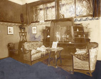 Kiállításfotó - Spiegel Frigyes féle szalonberendezés az Iparművészeti Társulat 1899. évi Karácsonyi Kiállításán