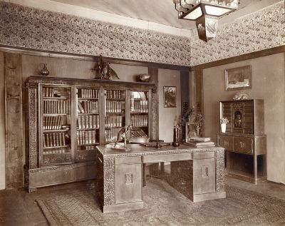 Kiállításfotó - Vass Béla tervezte dolgozószoba berendezés az 1912. évi Lakásművészeti Kiállításon