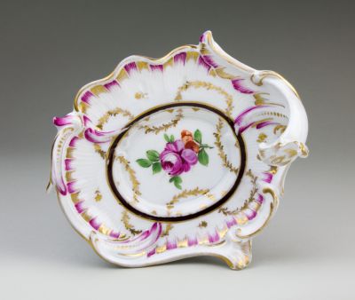Kínálótál (kisméretű) - rocaille-os díszítménnyel, öblében rózsákkal