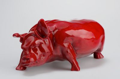 A nagytestű yorkshirei sertés nehézkes és komikusan erőteljes mozgását élethűen mintázta meg a modell alkotója. Jobb mellső lábával előrelép, bal hátsó lábát hátrafelé terpeszti, gerince meghajlik, nagy hasa baloldalt kidudorodik. Fejét balra fordítja, bal füle előrelendül. Az élénk vörös mázborítás egyenletes, fényes felületén szivárványos lila reflexek.