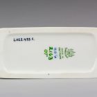 | Jelzés: | Alján zöld, máz alatti festéssel: három torony, alatta B&G, alatta félörívesen KJOBENHAVN alatta MADE IN DENMARK, máz alatti kékkel: B&G, alatta zölddel kézzel írva: 2163 (modellszám) alatta: OT, peremén benyomva: E |