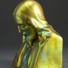 | Jelzés: | a bal váll oldalán a művész masszába karcolt jelzése: L SZ monogram. Alján masszába bélyegzett 8629 (formaszám, szerepel a 14. Zsolnay Façon-könyvben / formakönyvben); eosin mázra bélyegezett márkajelzés: hárompajzsos körben ZSOLNAY PÉCS felirat, felette öttorony ábrája, alatta MADE IN HUNGARY |
