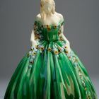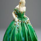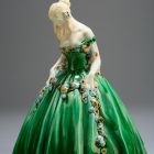 A biedermeier divat szerint öltözött, fésült, lehajtott fejű hölgy virágokból álló füzért tart krinolin szoknyájára kecsesen támaszkodó két kezében. A kék, sárga, barna virágfejekből álló girland a zöld ruhán középen lágyan ível, körbeveszi karcsú derekát és mély dekoltázsát. A szőke fürtös hajat is három-három virágfej díszíti. A bécsi modern művészet tudatosan idézte fel a biedermeier kor művészetét bizonyos értelemben ezt az anyagszerű, racionális, kényelemszerető és szolidan elegáns, kézműves polgári művészetet tekintette egyik előfutárának. Powolny krinolinos figurái a 20. század első évtizedében egyre jobban terjedő biedermeier-nosztalgia szülöttei.