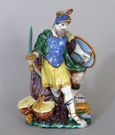 Mars – a harc, a háborúság istene a klasszikus mitológiában – a hagyományos ábrázolásmódnak megfelelően római öltözetet visel, a figura talapzatán hadi trófeák. Jobb kezében kivont kard, baljában pajzs, fején sisak. Színei: kék, zöld és sárga. A plasztika a korszak általánosan elterjedt – az olasz reneszánsz kisplasztika hatását is mutató – ábrázolási típusait követi, a hadi dicsőség szimbóluma.
