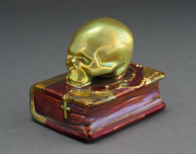Kisplasztika - Memento mori (imakönyv koponyával és rózsafüzérrel)
