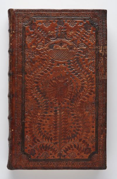 A díszes kötés tábláinak közepén koronás kétfejű sas VI. Károly német-római császár (1685–1740, ur. 1711–1740) névbetűivel: „C. VI.”.
