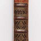 | Technika: | bőrkötés; kézi aranyozás; papírmárványozás; spriccelt festés (bőr) |