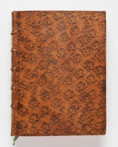 Technika: | bőrkötés; kézi aranyozás; márványozott hatású festés (bőr); papírmárványozás; rézmetszet |