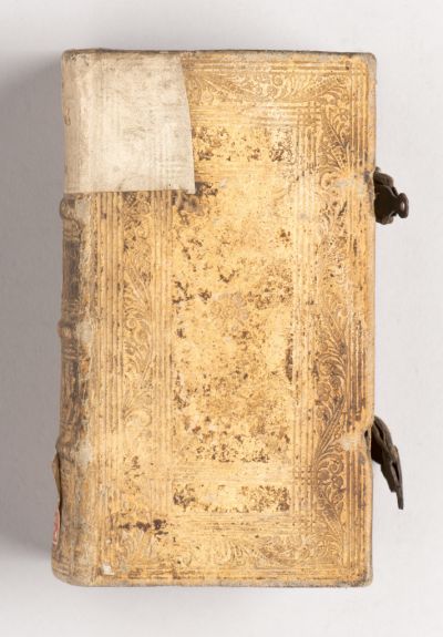 A vaknyomással díszített papírtáblás, fehér disznóbőr kötés a német reneszánsz könyvkötésekhez hasonló. Elő- és hátlapja azonos, a kötet két bőrszalagra erősített fémcsattal zárul.