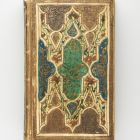 | Technika: | bronzfirnisz papír előzék; festés; kézi aranyozás; pergamenkötés |