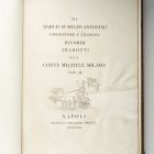 Di Marco Aurelio Antonino imperatore e filosofo. Ricordi, tradotti dal conte Michele Milano. - Napoli : Presso Vincenzo Orsini, 1820-1821. Vol. I. - 291 p. Vol. II. - 296-619., LXVI p.