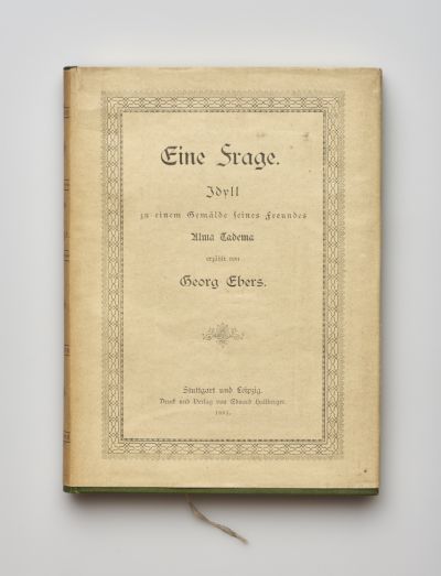 Ebers, Georg: Eine Frage. Idyll Zu Einem Gemälde Seines Freundes Alma Tadema. Stuttgart und Leipzig: Druck und Verlag von Eduard Hallberger, 1881.